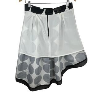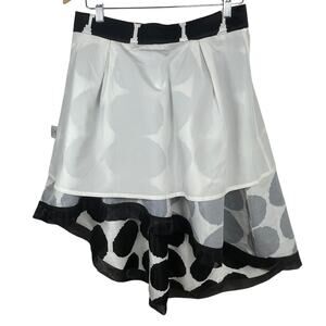 Gracia High-Low Skirt Black White Polka Dot Pleated Asymmetrical Ribbon Hem Sz L