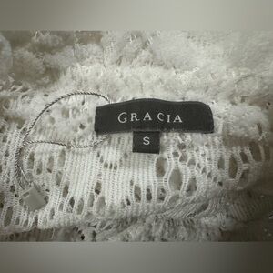 Gracia Italy Ruffle Neck Trapeze Top White sz S