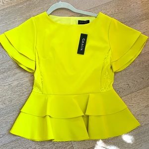 Gracia 💚 Lace Peplum Double Ruffled Sleeve Hem Short Sleeve Top Pleated Layers