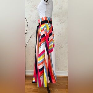 Gracia pleated maxi shirt,a stunning addition to your wardrobe. This pleated maxi skirt is rich featuring a beautiful print with combo features a satin design and tie waist for a chic and sophisticated look with a length 39” from waist to hem,the skirt is perfect for day and night out or a special event this pleated maxi skirt is a must have piece for your collection.It’s dual side on-seam pockets,this skirt combines practicality with fashion. The button and snap closure ensures a secure and comfortable fit. Pre owned . Excellent condition. The skirt has been cleaned and ironed. Waist 15”. Length of skirt 39”. Measurements are flat lay and approx. Feel free to ask any questions. Offers are welcome.