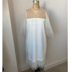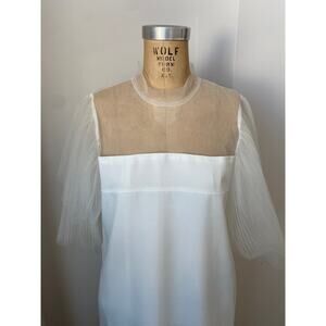 Gracia White Column Dress with Pleated Sheer Sleeves size M