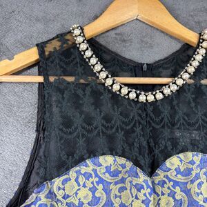 Gracia Women Dress Skater Lace Illusion Neckline Attached Pearls Large B130