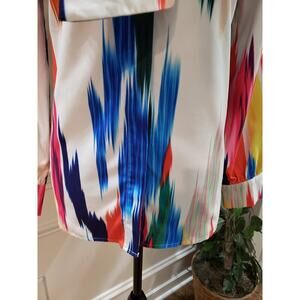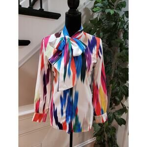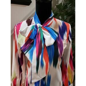 Gracia Women's Multicolor 100% Polyester Collared Long Sleeve Top Blouse Small.