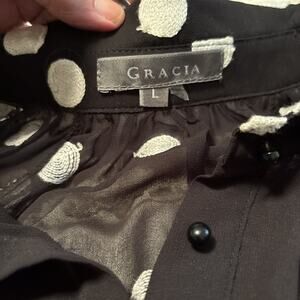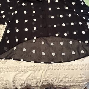 Gracia Women’s Shear Black/Dots. High/low Button up Shirt Large style 16285