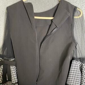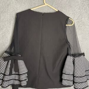 Gracia black bows plaid fancy date night dramatic bell sleeves dressy blouse S