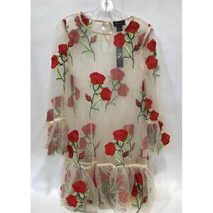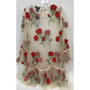 Gracia rose embroidered sheer mesh dress sz Small, no slip, new.