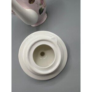 This elegant Gracie China Stechcol teapot, crafted from bone china , showcases a sophisticated pink and white design adorned with delicate roses. It accommodates up to 4 cups, making it a practical choice for serving tea. Its classic shape and detailed craftsmanship provide a timeless addition to any tea set.