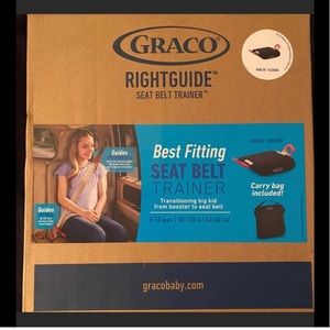 Graco Rightguide Seat Belt Trainer-Harlin Stages: Seat belt trainer (50-120 lb and 5-12 years old) Includes: Shoulder belt guide Safety Features: Shoulder belt positioner clip helps child properly position seat belt Portable: Lightweight for easy travel and carpooling; carry bag included with built-in clip and carry handle Big Kid Approved: Easy self-buckling with open loop belt guides The Graco RightGuide Portable Seat Belt Trainer helps transition your big kid from booster seat to vehicle seat belt. Designed for your child from 50-120lb and 5-12 years old, this seat belt trainer keeps your child properly positioned while using the vehicle seat belt. The open belt loop guides and shoulder belt positioner clip guide the seat belt against their lap and shoulder, teaching proper belt fit. The lightweight trainer comes with a carry case with clip so you can attach it to your child's backpack for carpooling or play dates, or carry it with you while traveling. Plus, this low-profile seat easily stores in the seatback pocket or trunk when not in use. The RightGuide Seat Belt Trainer is ProtectPlus Engineered, which helps to protect your child in frontal, rear, and rollover crashes. Specifications Dimensions (Overall): 2.5 Inches (H) x 13.25 Inches (W) x 11.75 Inches (D)