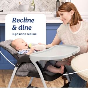 Ultra-slim folding high chair is designed to fit in compact spaces;