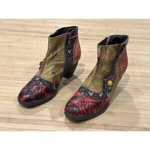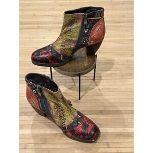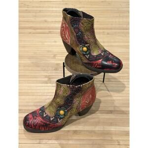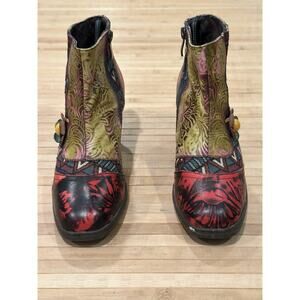Gracosy Sz 38 US 7 Handmade Leather Vintage Flower Ankle Boots Artsy Boots