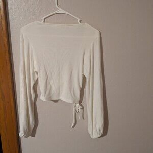 Grade & Gather Cropped Long-Sleeve. Super soft ribbed material with a wrap top and tie detail. Cropped fit.