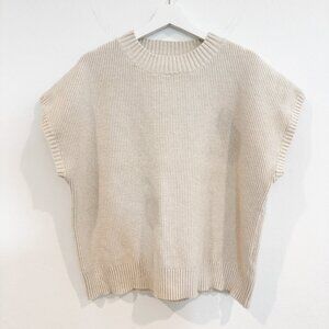 Grade & Gather Ribbed Knit Cap Sleeve Sweater Blouse Vest Top Boho Flawed Large