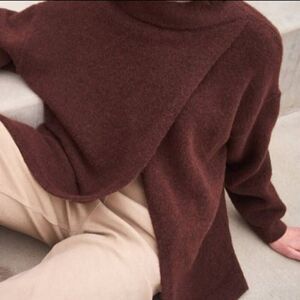 Versatile Tan Grade & Gather sweater with front to back overlap. Can be styled with overlap
