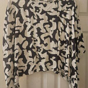 Grade&gather Lagenlook boho gray white cropped oversize Wrap Poncho Blouse L