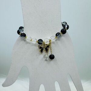 Gradient Black Beaded w/ Sparkly Bow Charm Bracelet - Small wrists
