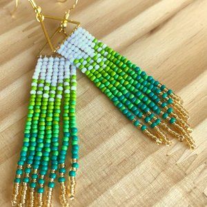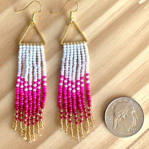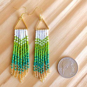 Gradient Colors Gold Triangle Body Hand Beaded Seed Bead Tassel Dangle Earrings