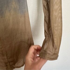Elevate your wardrobe with this chic gradient bodysuit. Featuring a blend of black and brown hues, this piece is perfect for either dance or layered under jeans or a skirt for a fun outfit. The pics dont do this justice; it is really beautiful in person. I bought this new with tags from Poshmark, and only wore it once, so it has pretty much no signs of wear.
