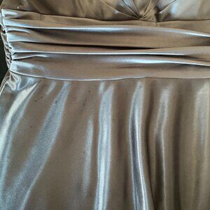 Gradient effect from a darker gray on the bottom to a light gray. Sequins all along the bottom of the dress