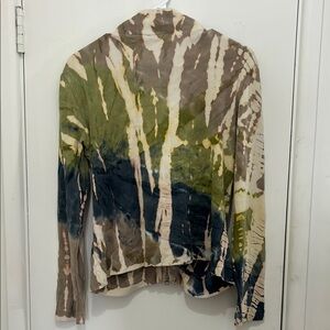 This sweatshirt features a captivating tie-dye design that transitions from light beige to deep navy blue, with olive and forest green tones in between. The organic, flowing pattern creates a unique visual effect, making it a standout piece in any wardrobe. Ideal for casual outings, this sweatshirt combines comfort with a striking aesthetic.
