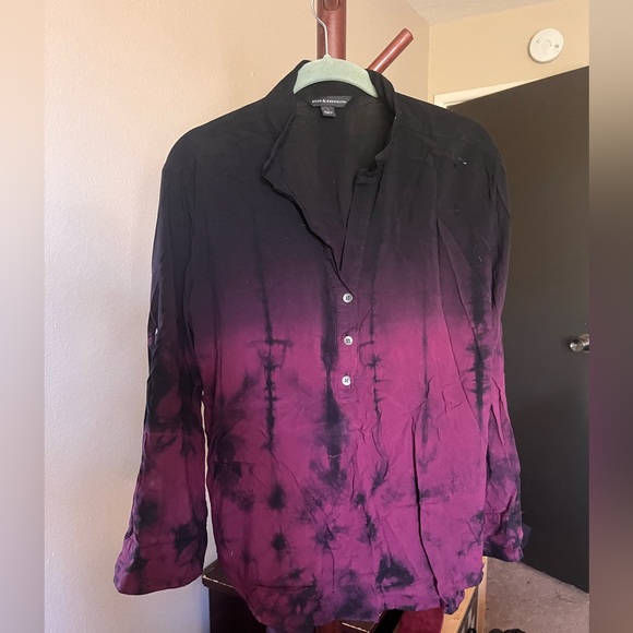 Awesome top, half buttoned and gradient magenta to black design. Sleeves can be rolled and help up. Very flattering