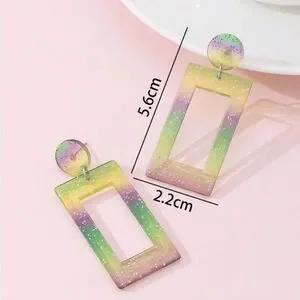 Stylish gradient rectangular earrings with a blend of purple, yellow, and green. Perfect for adding a pop of color to any outfit.