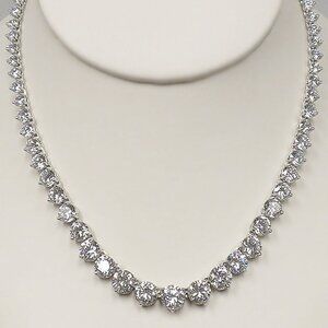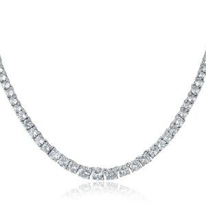 This beautiful tennis necklace features 3-prong set round cubic zirconia stones. The stones are graduated in an elegant and timeless style. The largest stone at the center of this necklace is approximately 2 carats.