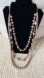 Elegant and versatile, this graduated beaded necklace features multiple strands of faceted beads in a soft dusty rose hue. The graduated design gives a dimensional, layered look, with each bead catching the light beautifully. Strands are accented with silky ribbon interwoven between beads, adding texture and a unique touch.