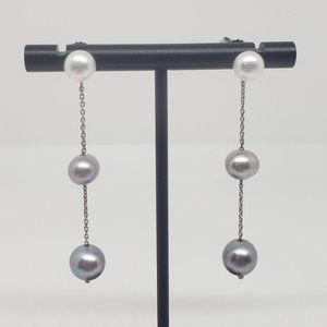 Graduated Dyed Multi Clear Cultured Freshwater Pearl Earrings with Sterling Silver Spacers