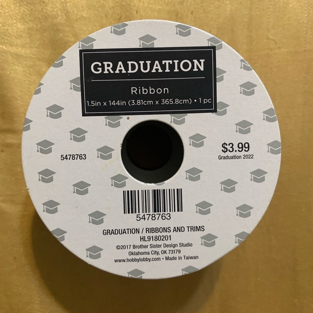 Celebrate with this graduation ribbon featuring a cap design. Perfect for gifts and decorations. Brand New would go great in picture frames. Or class reunion decorations. Brand New