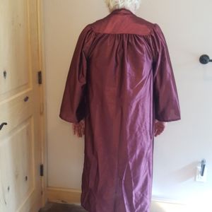 Men's or Woman's Maroon Graduation Robe, no Cap, successfully worn only once, estimated size fits height 5 feet 11 inches to 6 feet but will possibly fit other sizes, zipper front, zipper needs to be ready to pull up to engage both sides as is designed with two small teeth that do not allow engagement if pointed down, not that tricky once you realize it. Herff Jones, Made in the USA, an Employee owned company