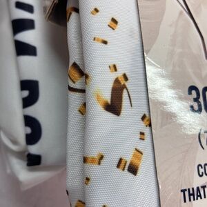 Tommy Bahama fitted polyester table cover. Reusable, durable, machine washable, water repellent, elastic fit. Compatible with all tables that are 30” wide and 72” long. White background with black graduation caps and gold around diploma (basically white, black, gold) 1 piece. New in box. Unused.