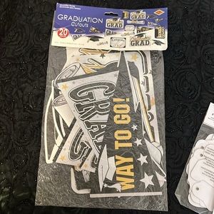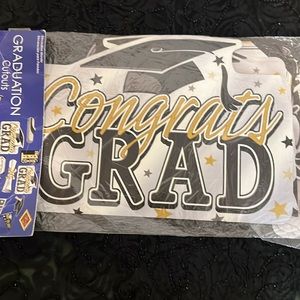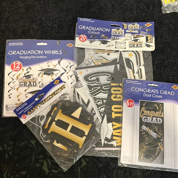New never used still in the packaging, black, gold, and white for any graduation does not have a specific graduation type or year on the decor decorations for the door tables, hanging decorations