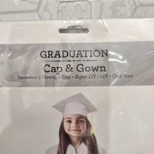 Graduation Childrens Cap and Gown for Ages 11Y-12Y, White, One Size