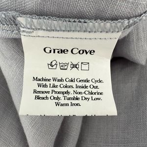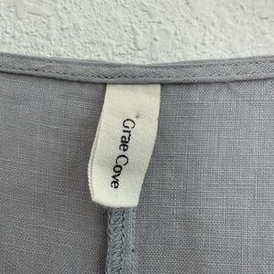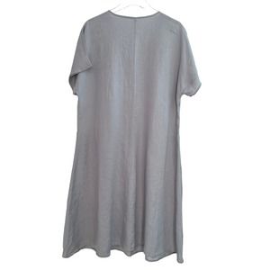 Grae Cove A Line Short Sleeve Linen Dress Women XL Blue Gray V Neck Pockets