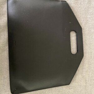This sleek, modern bag is an unusual listing from Graf & Lanz. It resembles an Italian document envelop. Black leather.