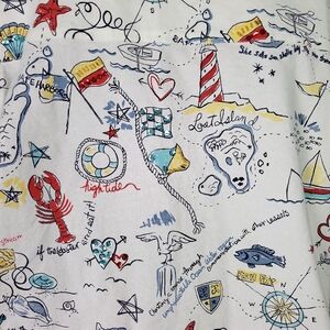Graff PXL Lady White Fish Fry Ocean Print White Button Down Jacket Plus Blue Sequin Anchor Yellow Blue Shell Blue Sequin Red Starwish Bird Red Lobster