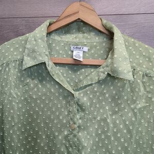 Graff Sheer Lime Green Button Blouse Women's Medium Petite