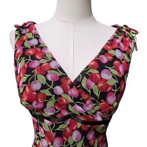 cherry print, y2k, pinup, retro, fruit dress, summer, sleeveless, v-neck, swing style, graffiti ny