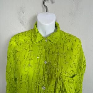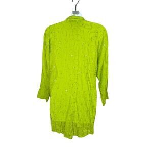 Graham Kandiah Button Up Shirt Long Line Tunic Size S Embroidered Sequin Lime Green