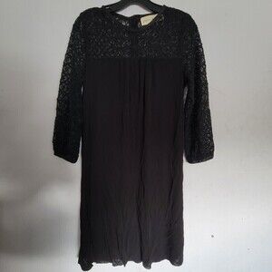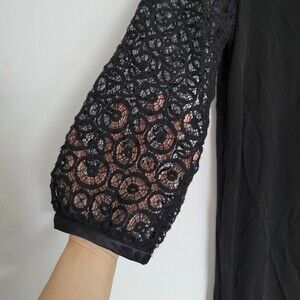 Graham & Spencer Black Button Back Floral Lace 3/4 Sleeve Shift Dress Size Large