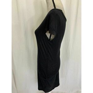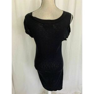 Graham Spencer Womens Solid Black Crew Neck Short Sleeve Midi Dress Small. Condition is Pre-owned. Shipped with USPS First Class Package. Length 37, bust 33, 30, hips 33. Measurements in inches. Smoke and pet free home. Fast shipping. Small hole as shown in photo.