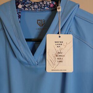 Gram Luxe Men's Blue "Large" Hoodie Pullover Golf Light Weight Stretch (0366P3)