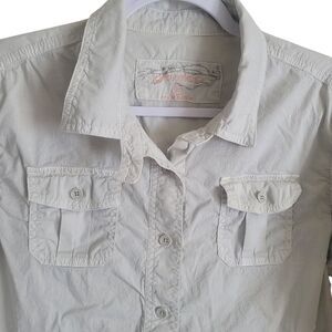 Gramicci Button Up Cargo Shirt Women's Large L Beige Tan Cotton Gorpcore Hiking