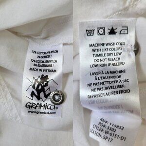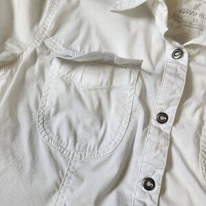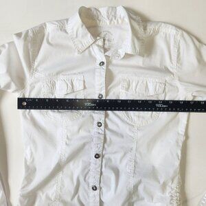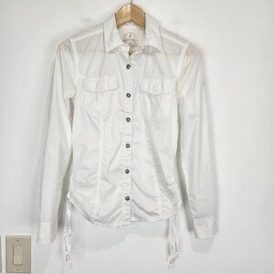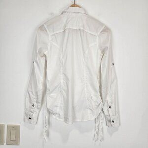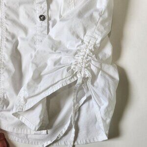 Gramicci Button Up Shirt Womens XS White Roll Tab Sleeves Ruched Sides Outdoor