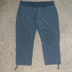 Gramicci Lite Flight Tech Crop Capri Cinch Joggers Gray XL. These comfy athleisure pants are an everyday essential for all types of people from outdoor enthusiasts to modern office workers, hospitality heroes and more. The cinch ankle detail allows for adjustable fit. Thick waistband. Pockets on the seam and one in the back. Adjustable self tie drawstring. Approx measurements: 11“ rise, 24“ inseam, & 18.5“ waist. Great pre-owned condition. No stains/flaws. Smoke/pet free home. Offers welcome. Bundle & save. Ship same/next day. Packaged w/ care.