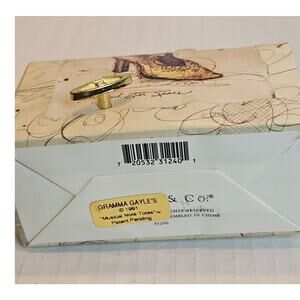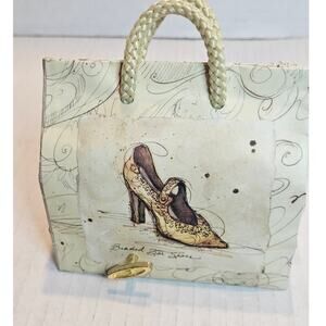Gramma Gayle's Musical Note Tote with braided rope handles. Plays "Memories" from the musical "CATS." Features picture of French type Buckle Shoe on front, Beaded Bar Shoe on back.