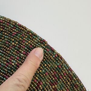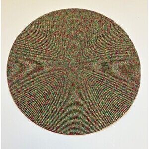 Grammercy Beaded Charger Placemat 15” Round Green Red Gold Beads Decor