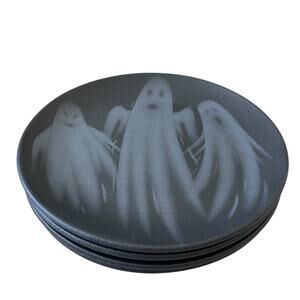 Grammercy Studio Halloween Ghost Salad Plates 8in Matte Black Set of 4 New