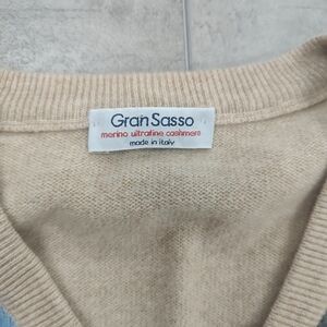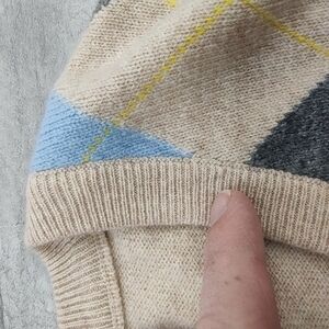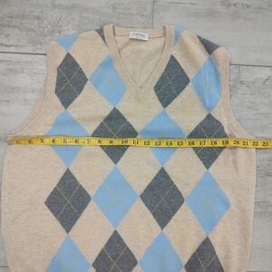 Gran Sasso Mens Wool Cashmere Tan Blue Argyle V neck Sweater Vest XL