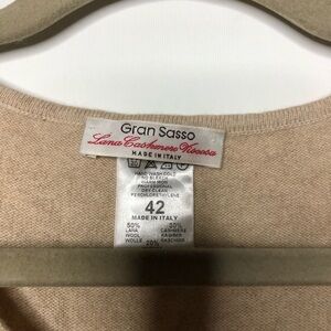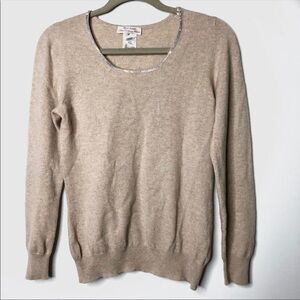 Gran Sasso tan cashmere crewneck pullover knit top with sparkling neck line S C7